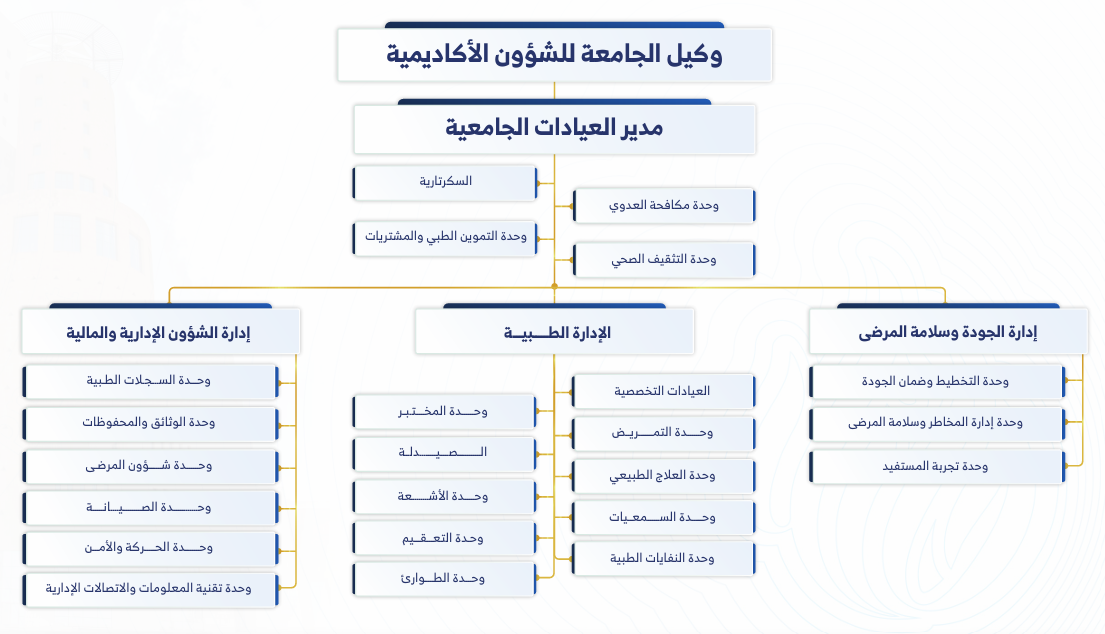 3. تحقيق رضا المستفيدين عن الخدمات الطبية المقدمة لهم من العيادات الطبية الجامعية.