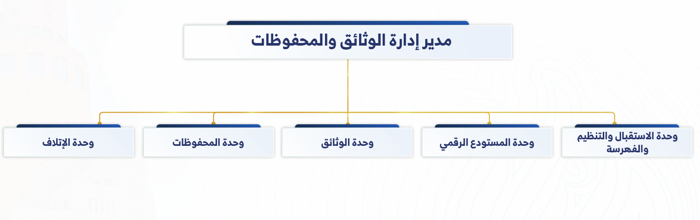 11. الإشراف والمتابعة على عمليات حفظ الوثائق والمحفوظات وتحويلها وأرشفتها إلكترونياً.